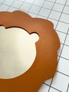 Espelho em vidro, marca CEBRACE com 3mm de espessura, reflete 100% da imagem e não risca com o passar do tempo. O espelho vai embutido e lacrado dentro da moldura no formato de leão garantindo assim total segurança da peça.